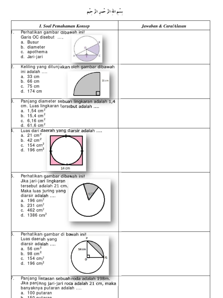 Dengan adanya soal ini semoga bisa membantu bapak ibu wali murid wali kelas yang membutuhkan soal luas dan keliling lingkaran untuk bahan ajar putra putri anak didik yang duduk di bangku sekolah dasar kelas 5 dan 6.