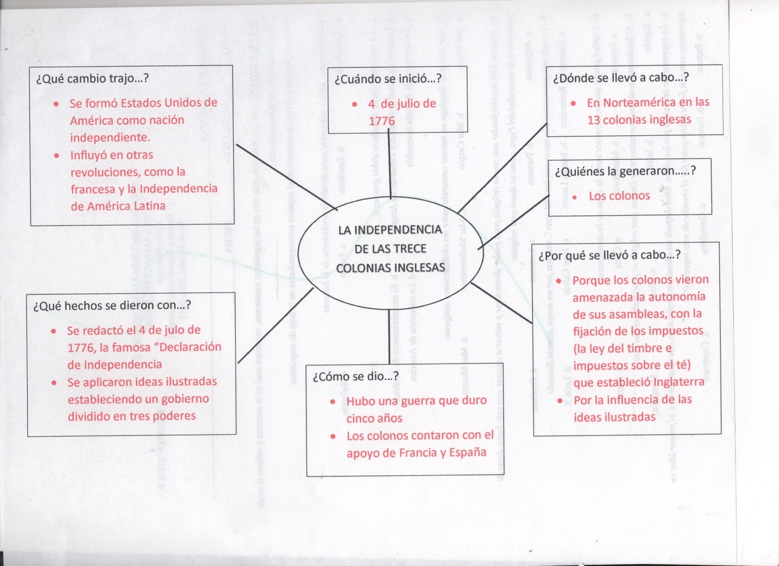 Cuadro Sinoptico De La Independencia De Las 13 Colonias Inglesas