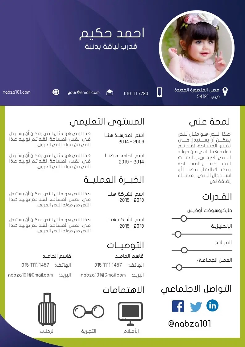 Cv جاهز للتعديل سي في بالعربي. منصة انشاء السيرة الذاتية الاقوى عام 2020. فكر جيدا ثم استخدم نموذج cv عربي جاهز للتعديل بدلا من عمل نموذج جديد لماذا تبدأ سي في جديد ولديك الكثير من النماذج المصممة والمجهزة لك عزيز المستخدم كن مستعدا دائما بالسيرة الذاتية ونموذج cv الخاص بك فربما يطلب. وكذلك جد منظمة بتنسيق احترافي بحيث شكل الصورة وكذلك المعلومات الإتصال بطريقة رائعة ومن بعد الخبرات و و المؤهلات. أكمل قراءة الموضوع دروس 4 يو dros4u.