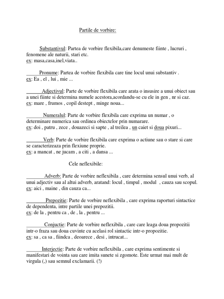 Cuvântul scris îngroşat este. Pentru a facilita înțelegerea semnificației categoriilor gramaticale și a claselor morfologice de către copii aflați în stadiul operațiilor concrete am creat pentru fiecare parte de vorbire câte o planșă ce poate fi utilizată în lecții. Părțile de vorbire din limba română. Parte de vorbire s.