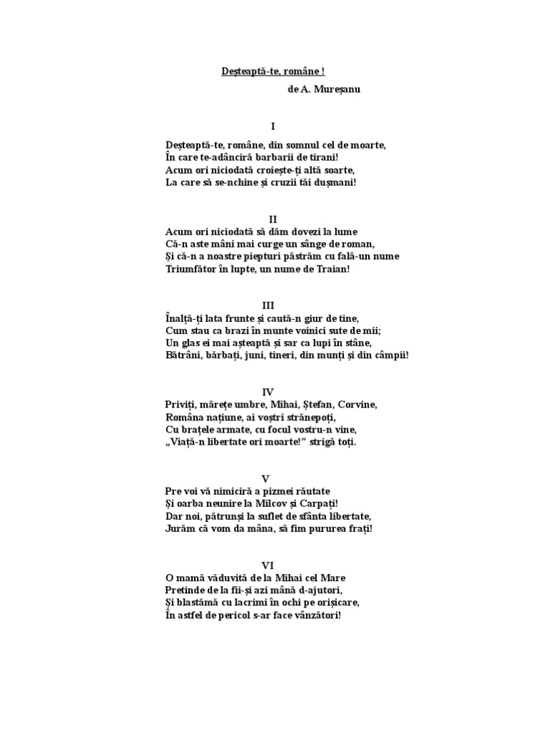 Versuri deșteaptă te române de andrei mureșean. Imnul național al româniei deşteaptă te române din somnul cel de moarte. In the past it has also been the national anthem of moldova.